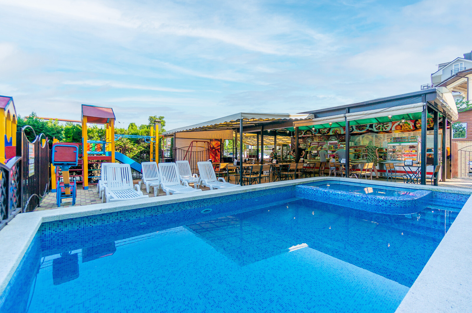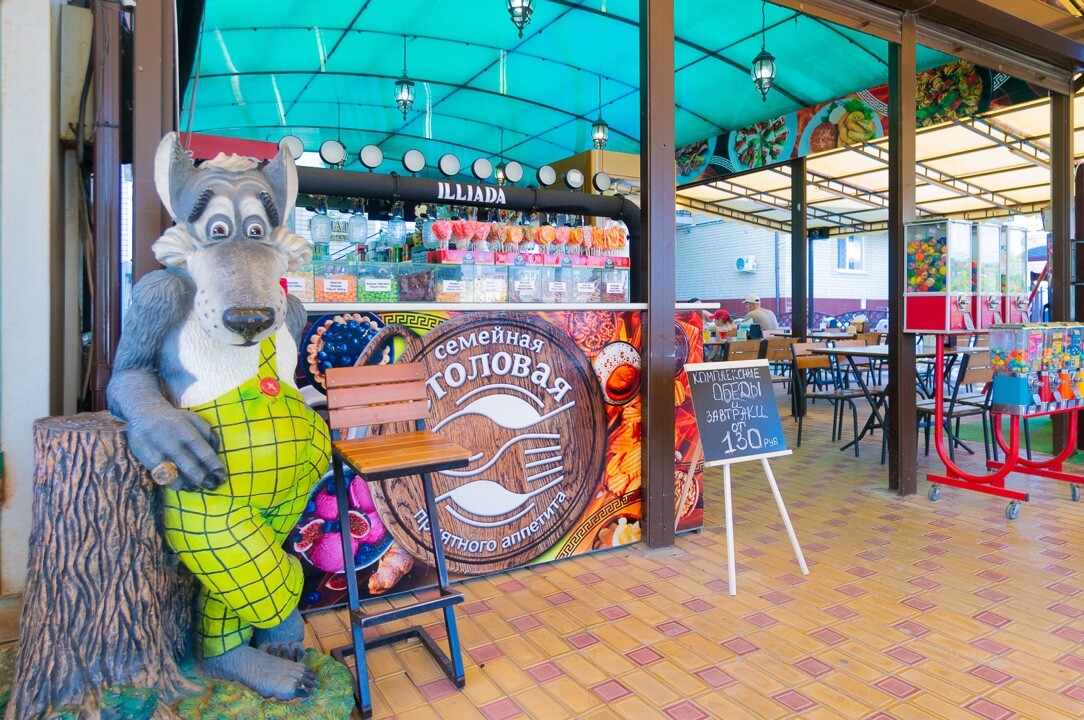 Специально для наших маленьких гостей в столовой оборудована детская площадка с горками и качелями.
