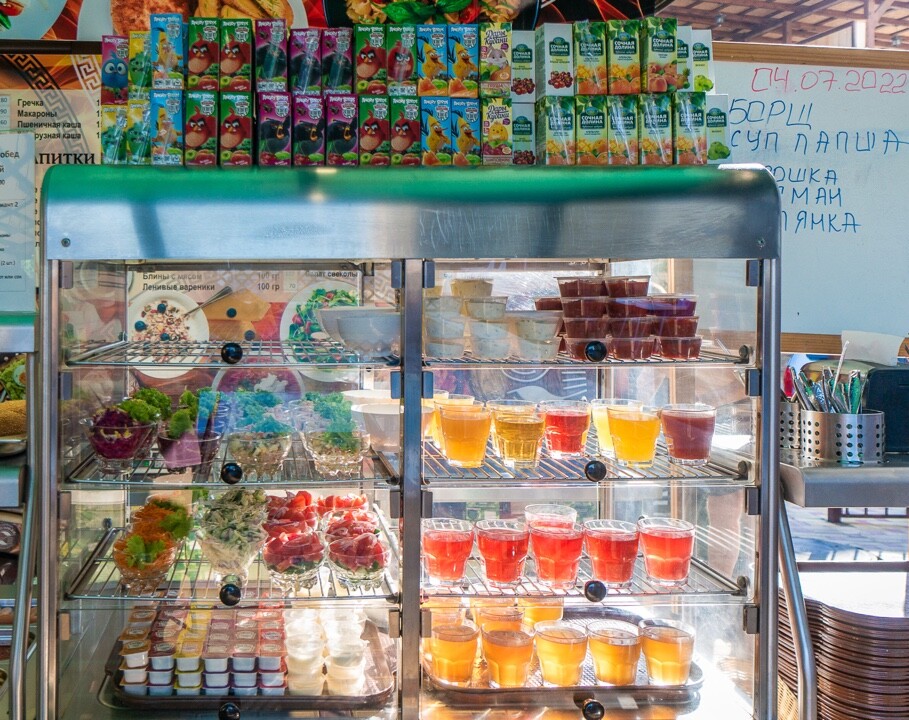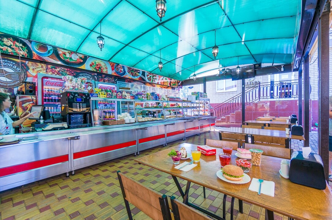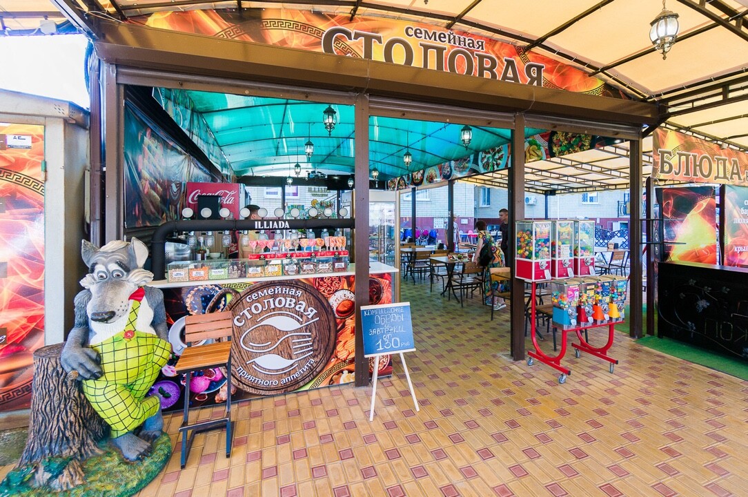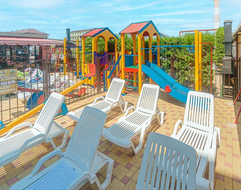 Специально для наших маленьких гостей в столовой оборудована детская площадка с горками и качелями.